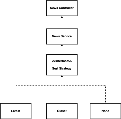 해당 구조를 살펴보면 다음과 같이, 전략 클래스를 캡슐화 하기위해 Sort Strategy 인터페이스를 설정함을 알 수 있다.