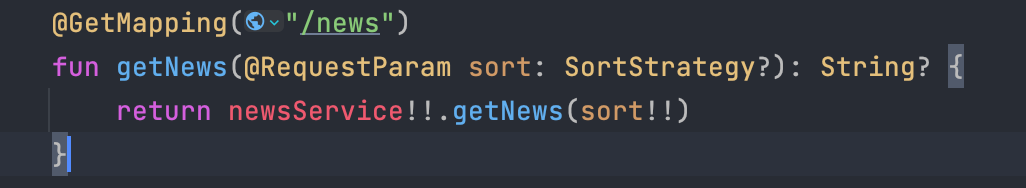 - RequestParam을 통해 값을 받았을 시, Service에 구현한 getNews 로직에 해당 값이 삽입된다.