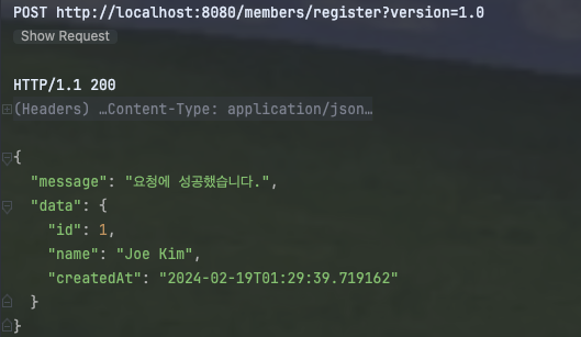 해당 API에 요청을 보낼 경우 정상적으로 동작이 수행된다.