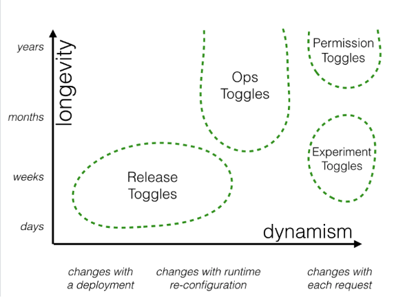 - 대부분의 Ops 토글은 상대적으로 수명이 짧다. 새로운 피쳐의 운영에 대한 확신이 생기면 플래그를 삭제한다.