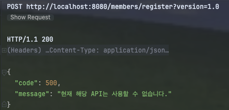 해당 구현에 의해 만약 요청이 들어왔을 경우 활성화되어있지 않은 API의 경우 다음과 같은 에러를 반환한다.